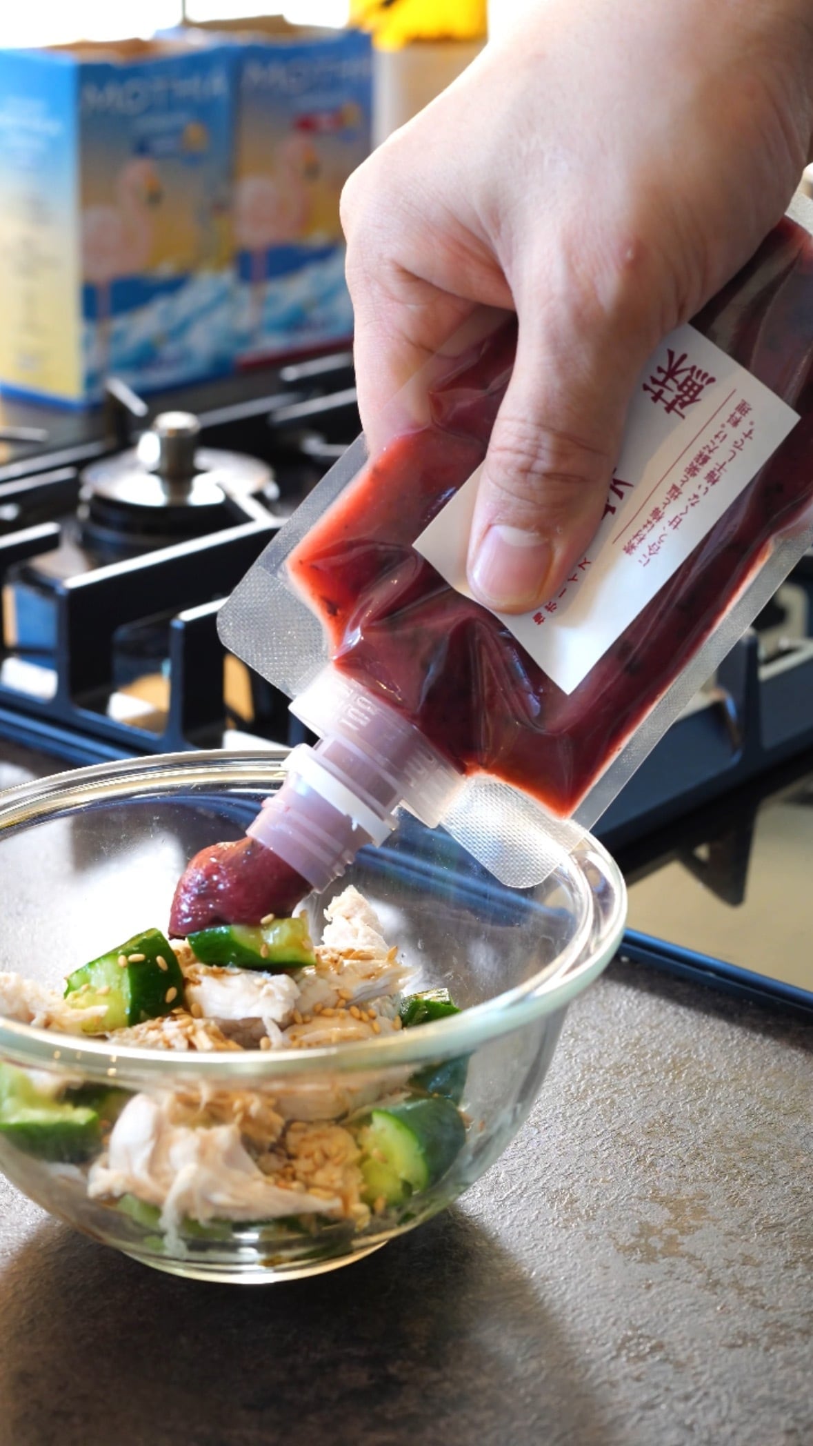 茹でた鶏ササミときゅうりを和えて、