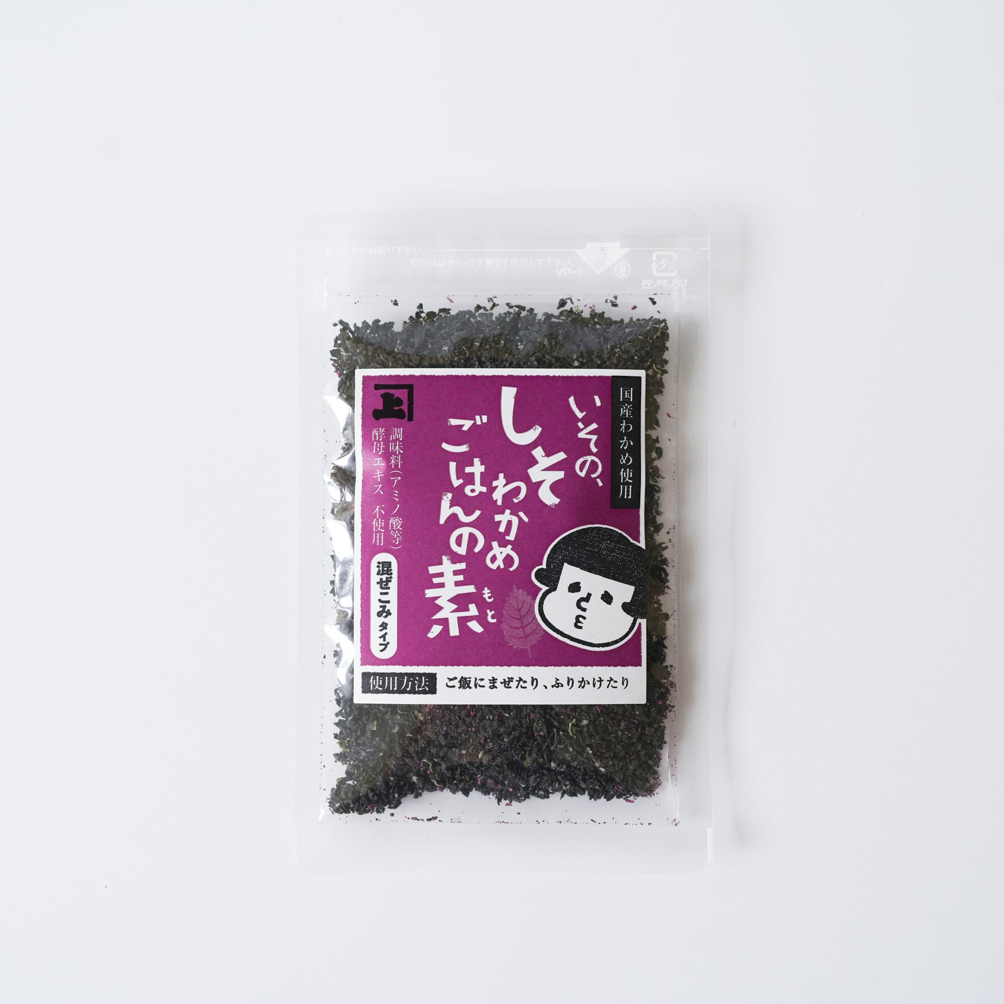わかめ加工品(わかめ(国内産)、粗糖(さとうきび(鹿児島県産))、昆布粉末(昆布(北海道産))、乾燥赤しそ(赤しそ(国産)、食塩、梅酢)